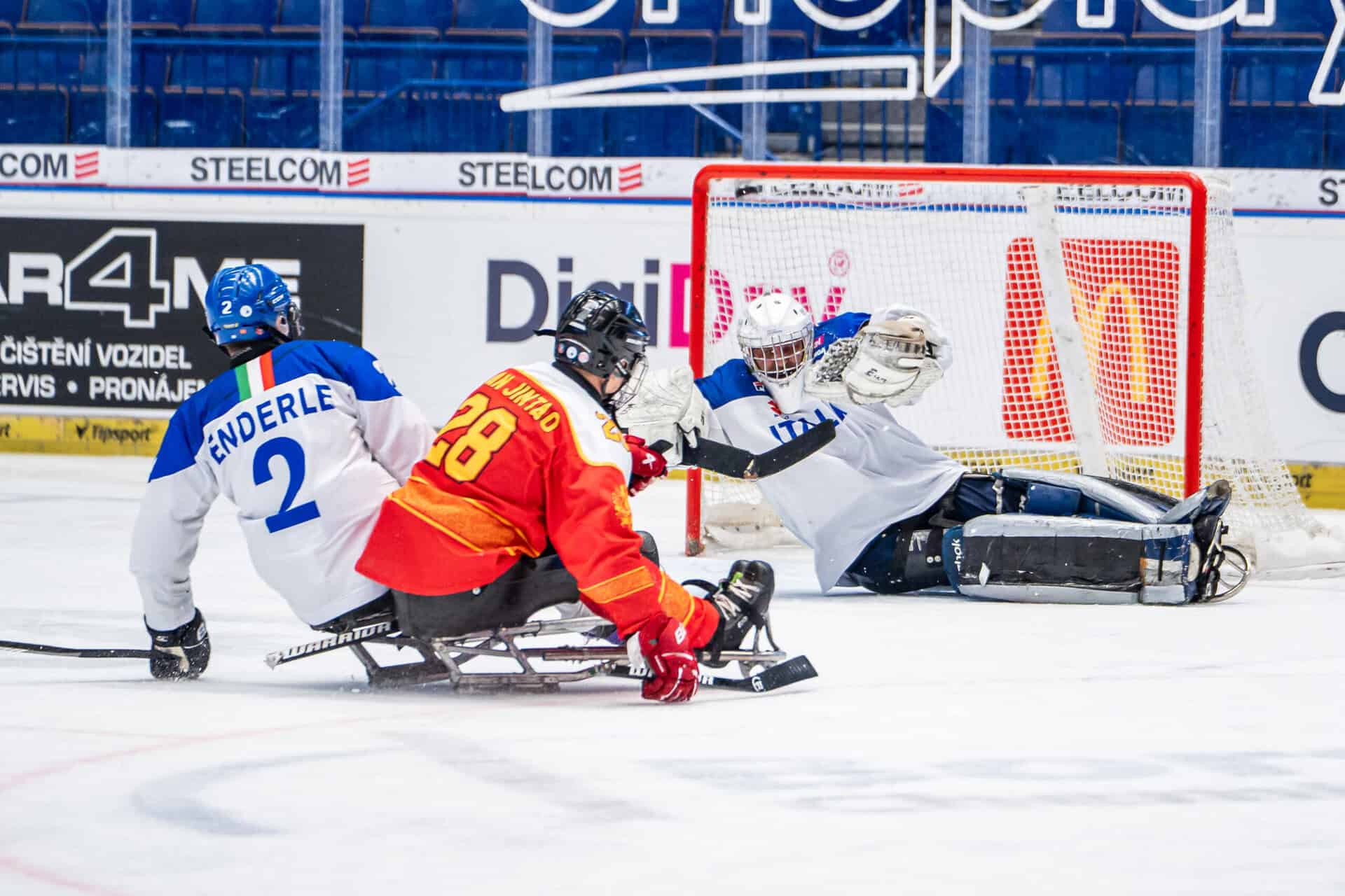 Ve druhé polovině třetiny hráli Italové dvě přesilovky. V té druhé nechávali hodně otevřená zadní vrátka. Několik úniků stihli zastavit, samostatnou jízdu Tiana Jintao středem kluziště ne a byl z toho čtvrtý domácí gól.