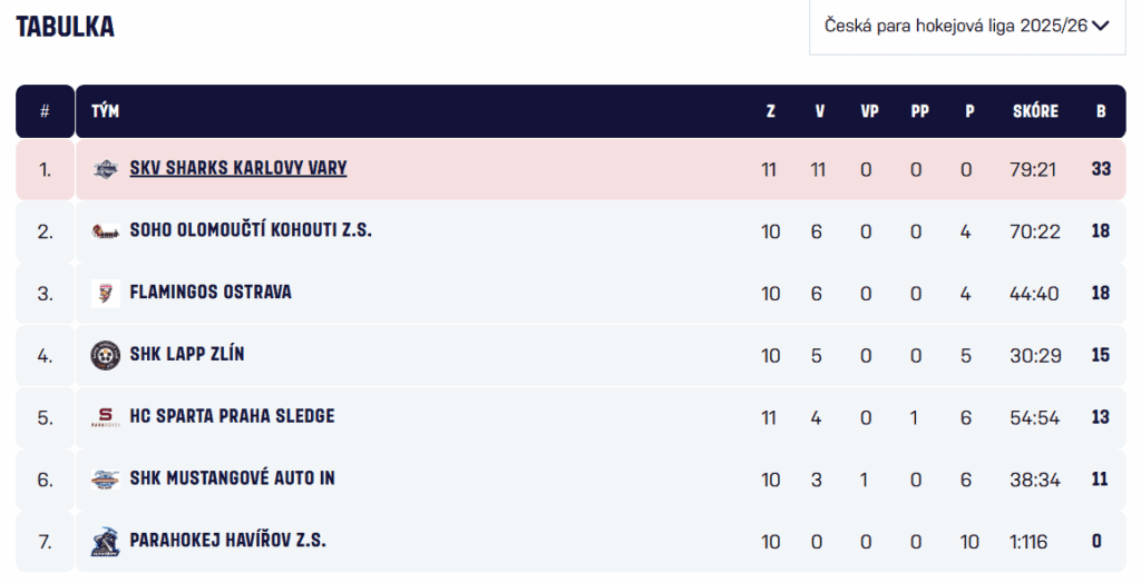 Předvánoční ligové kolo potvrdilo aktuální převahu karlovarských Žraloků, kteří si vítězstvím nad Olomoucí zajistili první místo v dlouhodobé části. Právě Olomouc se pak drtivou výhrou v Praze vrátila do hry o druhou příčku zajišťující zápas o konečné zlato ve zkrácené paralympijské sezóně. Sparta doma prohrála i se Zlínem a o šanci na druhé místo přišla. O to se tak v posledním kole během prvního lednového víkendu poperou Olomouc, Ostrava a Zlín.